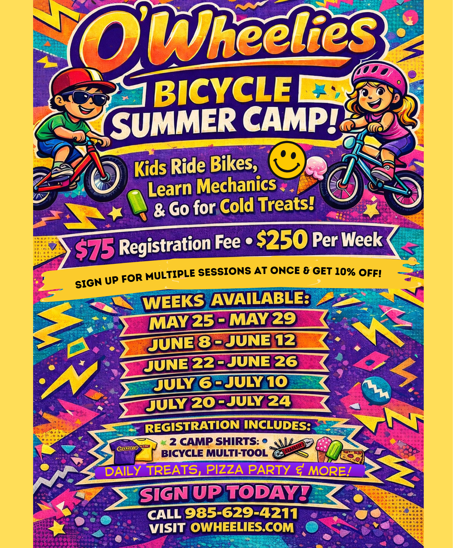 At O'Wheelies, we're not just a bicycle and skateboard retail store. We also offer summer camps, host epic birthday parties, run a bicycle riding club, events galore and more! The coolest accessories and your go-to spot for all things fun on wheels!
